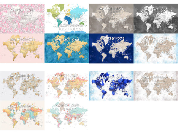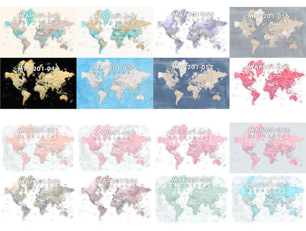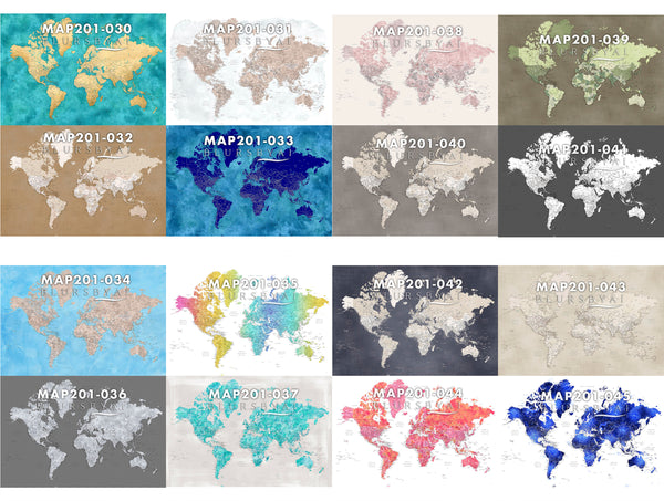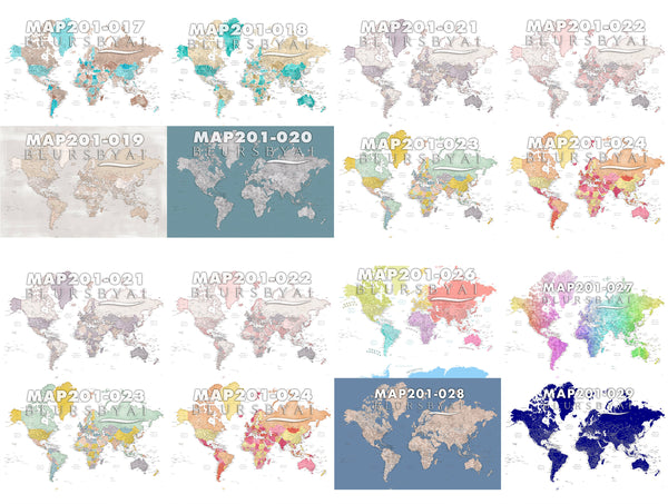 Map prints: world maps with main cities & capitals, countries and states labeled